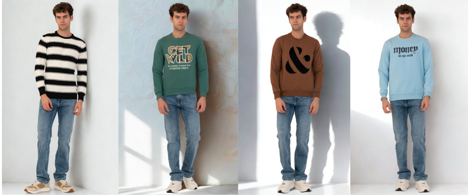 Albion Cyan & Black Men’s Premium Winter Crewneck – Cozy & Stylish Sweatshirt