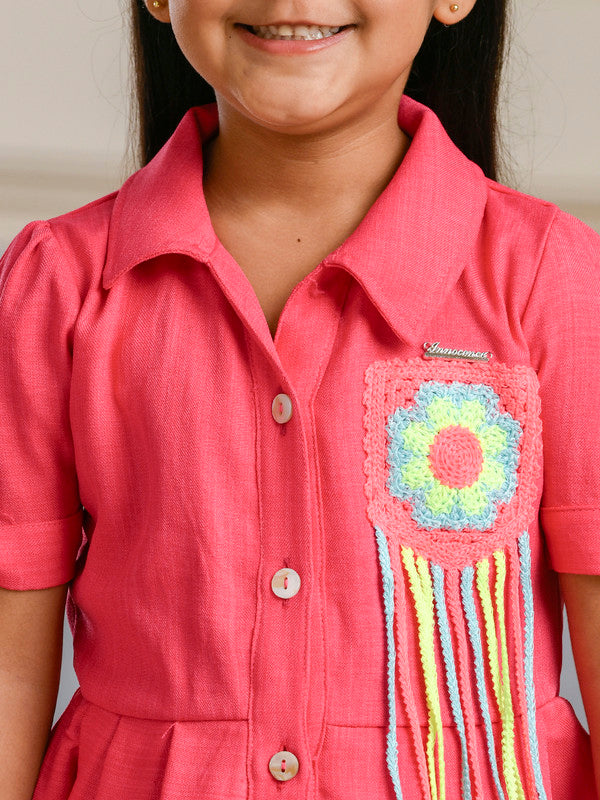 Elegant and simple solid cotton fit & flare dress for girls, ideal for both everyday wear and special outings.