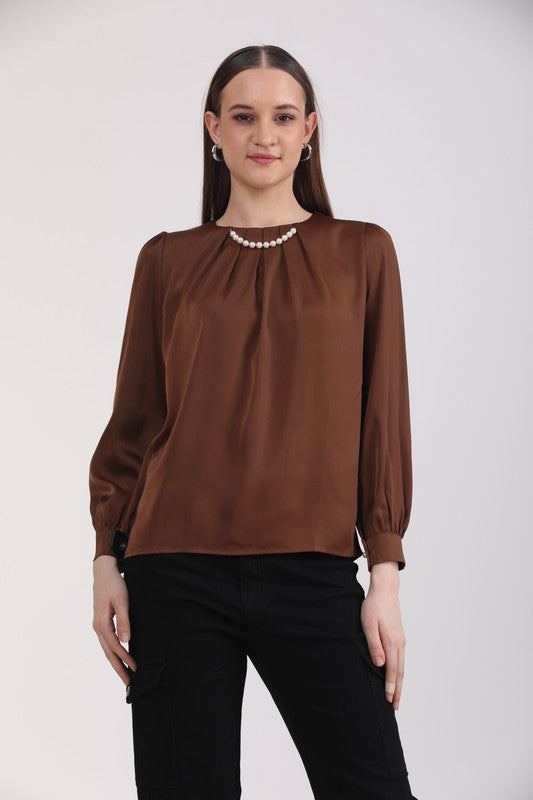 Features subtle gathers, stylish sleeves, and refined finishes for a polished look.