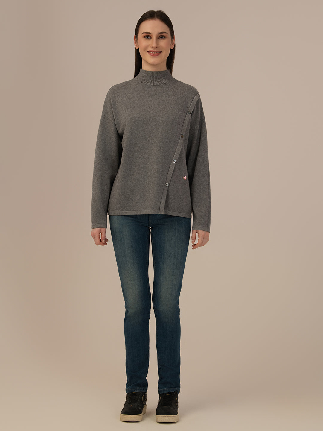 ALBION Women’s Designer Woolen Top – Elegant Look, Ultimate Warmth-GREY