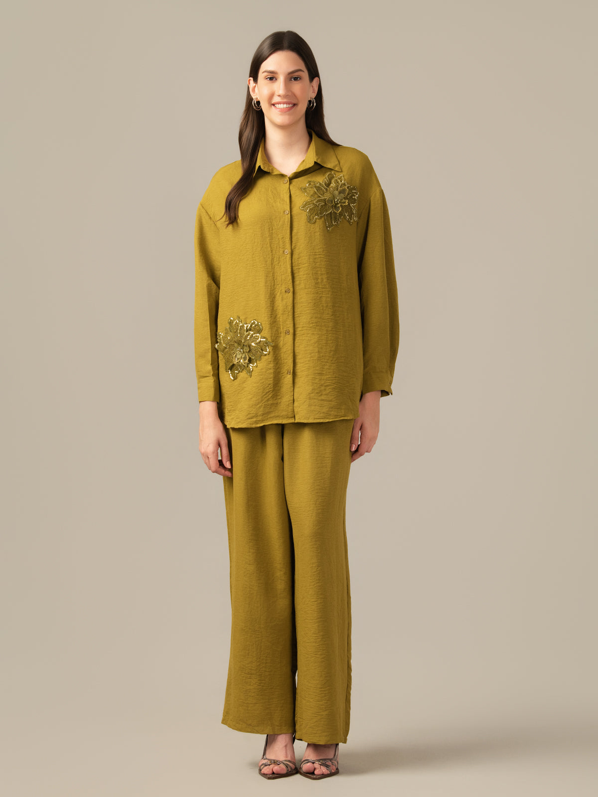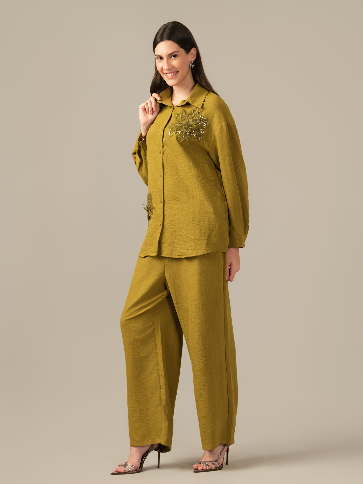 Step into effortless elegance with this Mehndi Cord Set, designed to give you a perfect balance of comfort and style. Crafted from soft, breathable fabric, this co-ord comes with a matching top and bottom in a graceful mehndi shade that adds a touch of sophistication to your look. Perfect for casual outings, festive gatherings, or everyday wear, this set keeps you stylish while ensuring all-day comfort.